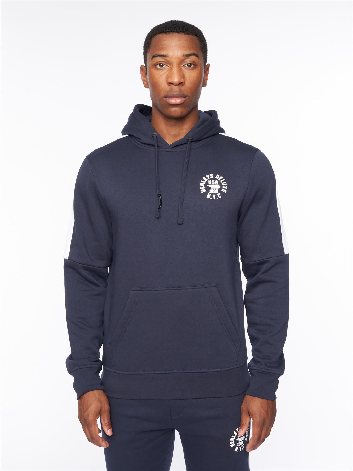 Elevate your casual attire with this men's carbon brushed cotton hoodie featuring a combination of high-build and flat ink prints on the chest and hood. Finished with high-definition woven labels, it offers a modern and stylish look for everyday wear.