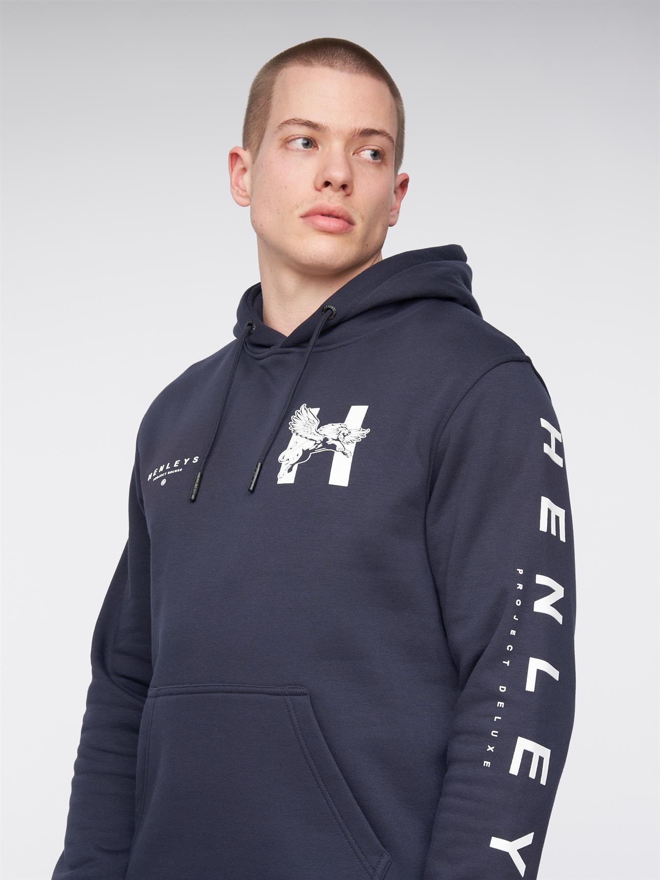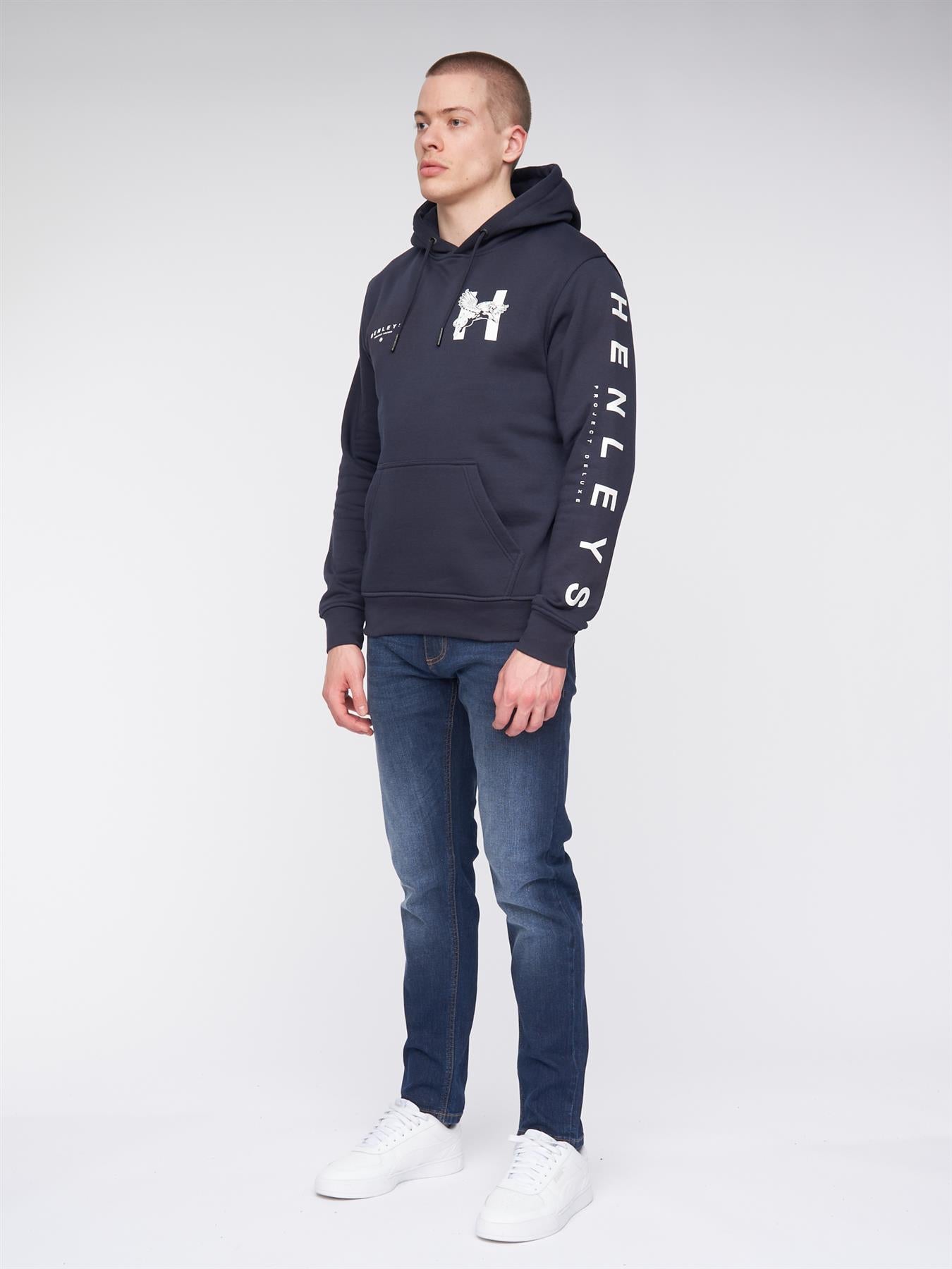 Introducing our Men's Carbon Brushed Cotton Hoodie. Crafted for comfort and style, it features a flock transfer to the chest for a textured look. With high-definition woven label tape and a left-hand flock transfer sleeve print, it's the perfect blend of quality and sophistication. Fabric:: 65% cotton, 35% polyester.